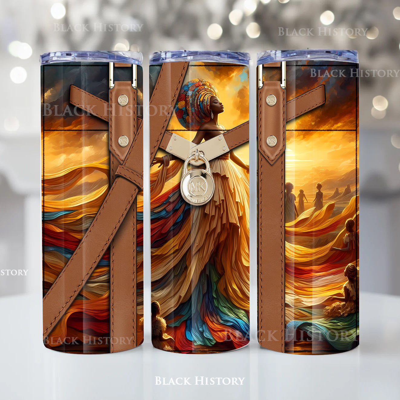 The faux-leather strap design with metallic detailing gives this tumbler a luxury handbag feel—perfect for those who rep style and culture everywhere they go.