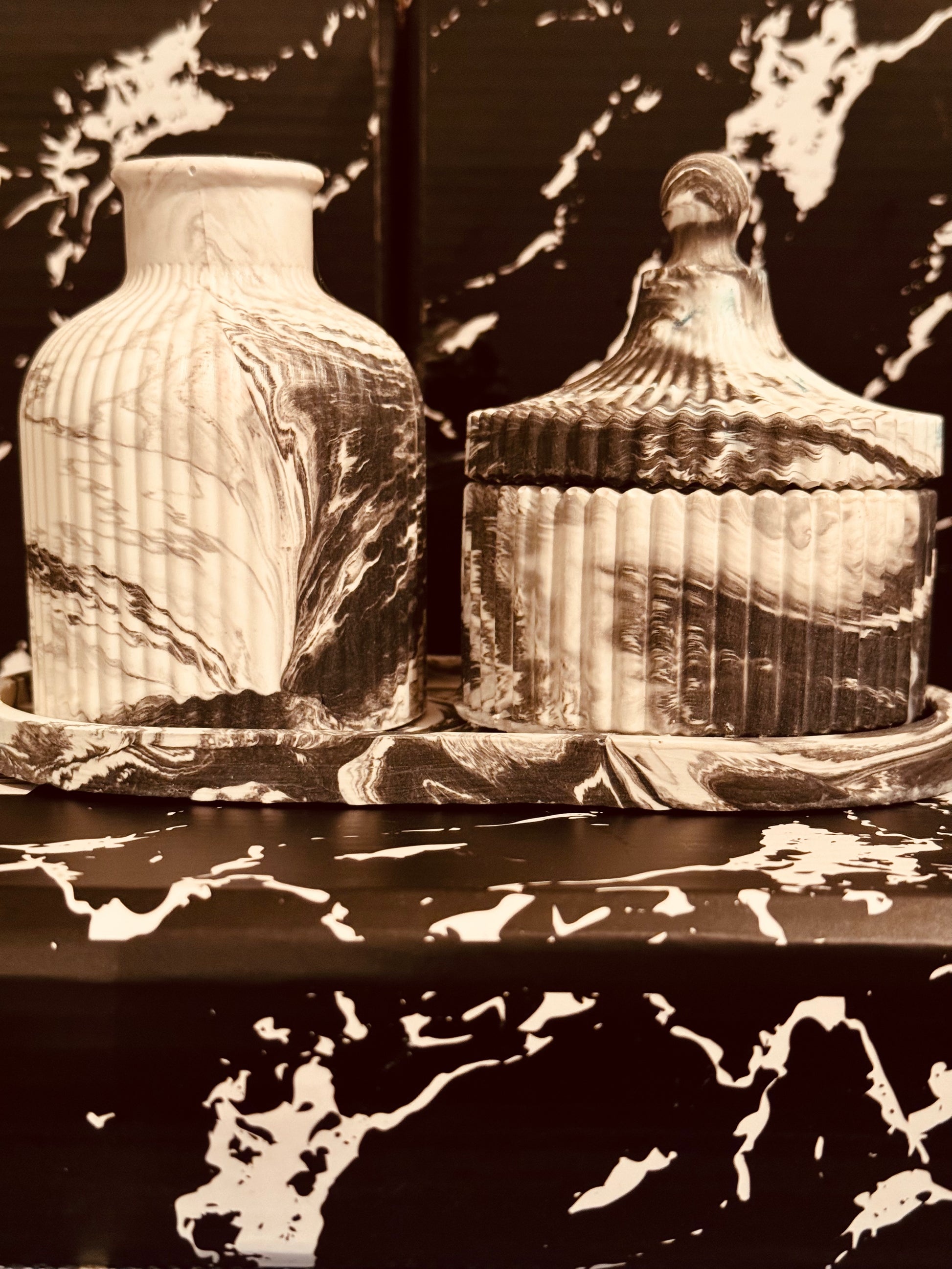 Sherrell Candles LLC (Leshellcreation) Black Marbled Elegance Candle, Soap, flowers or Toothbrush holder