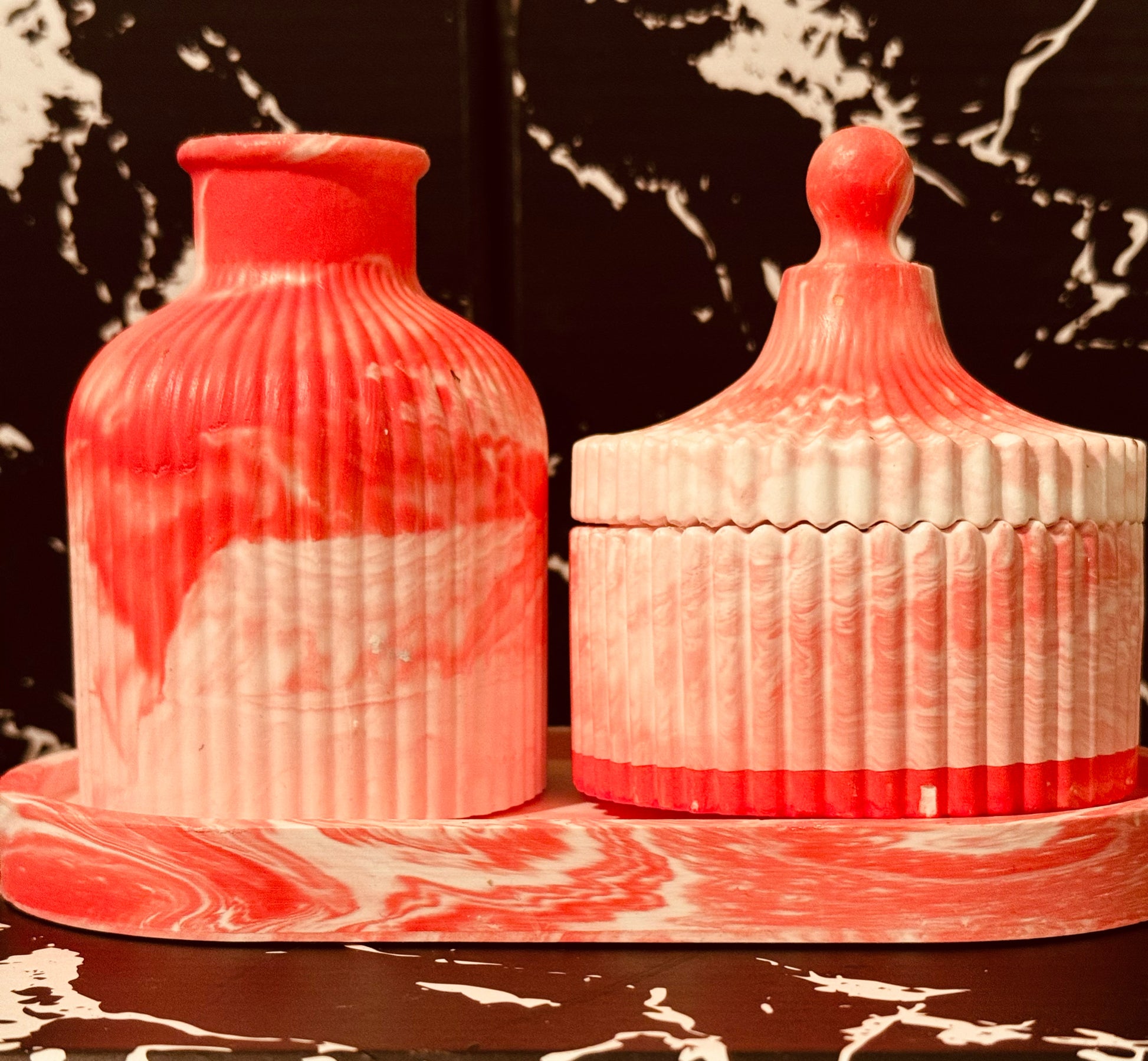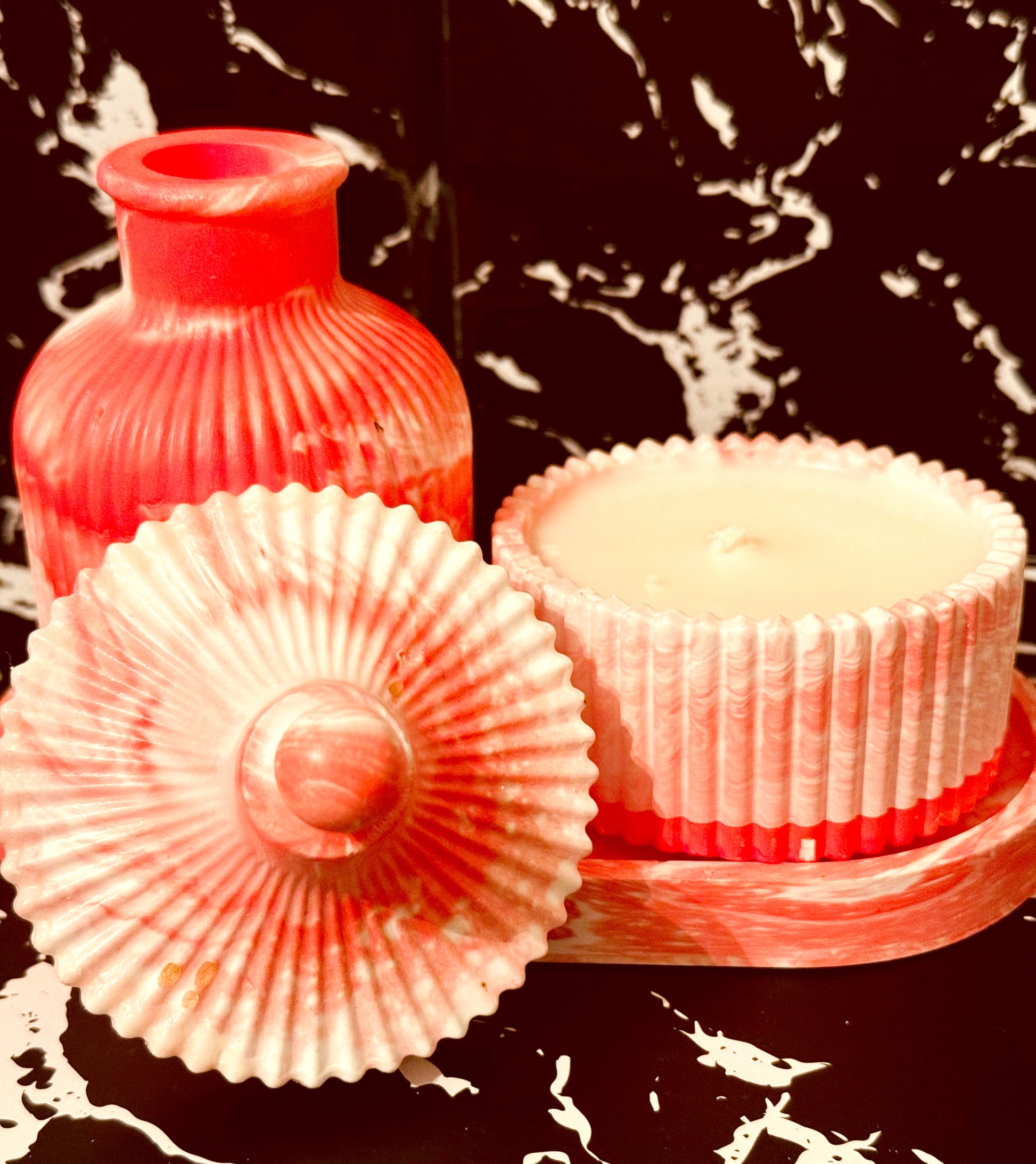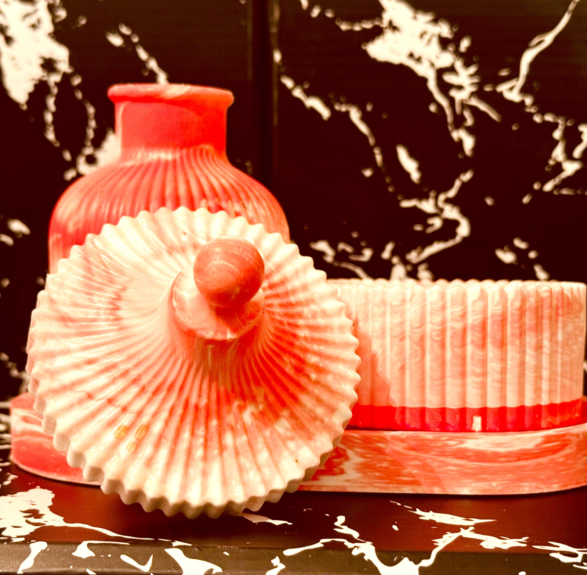 Sherrell Candles LLC (Leshellcreation) Red Marbled Elegance Candle, Soap, flowers or Toothbrush holder